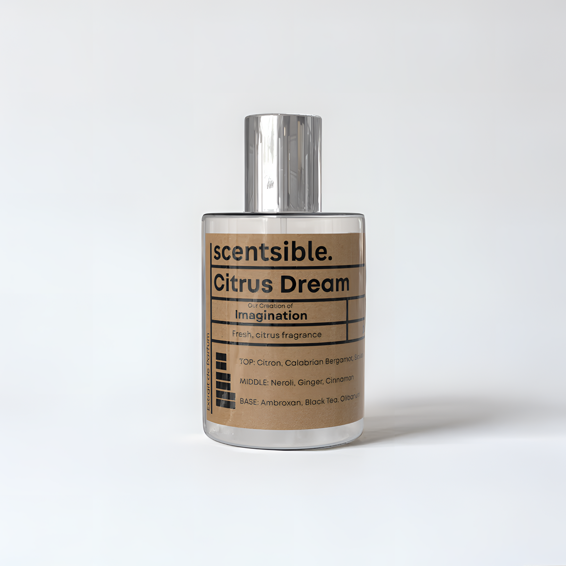 Our creation of Imagination is a luminous, spicy citrus that evokes early-morning awakenings. Zesty bergamot and orange lead into an elegant heart of neroli warmed by ginger and cinnamon, finally settling into a refined base of black tea and soft woods—a fresh, sophisticated scent that whispers class and calm.