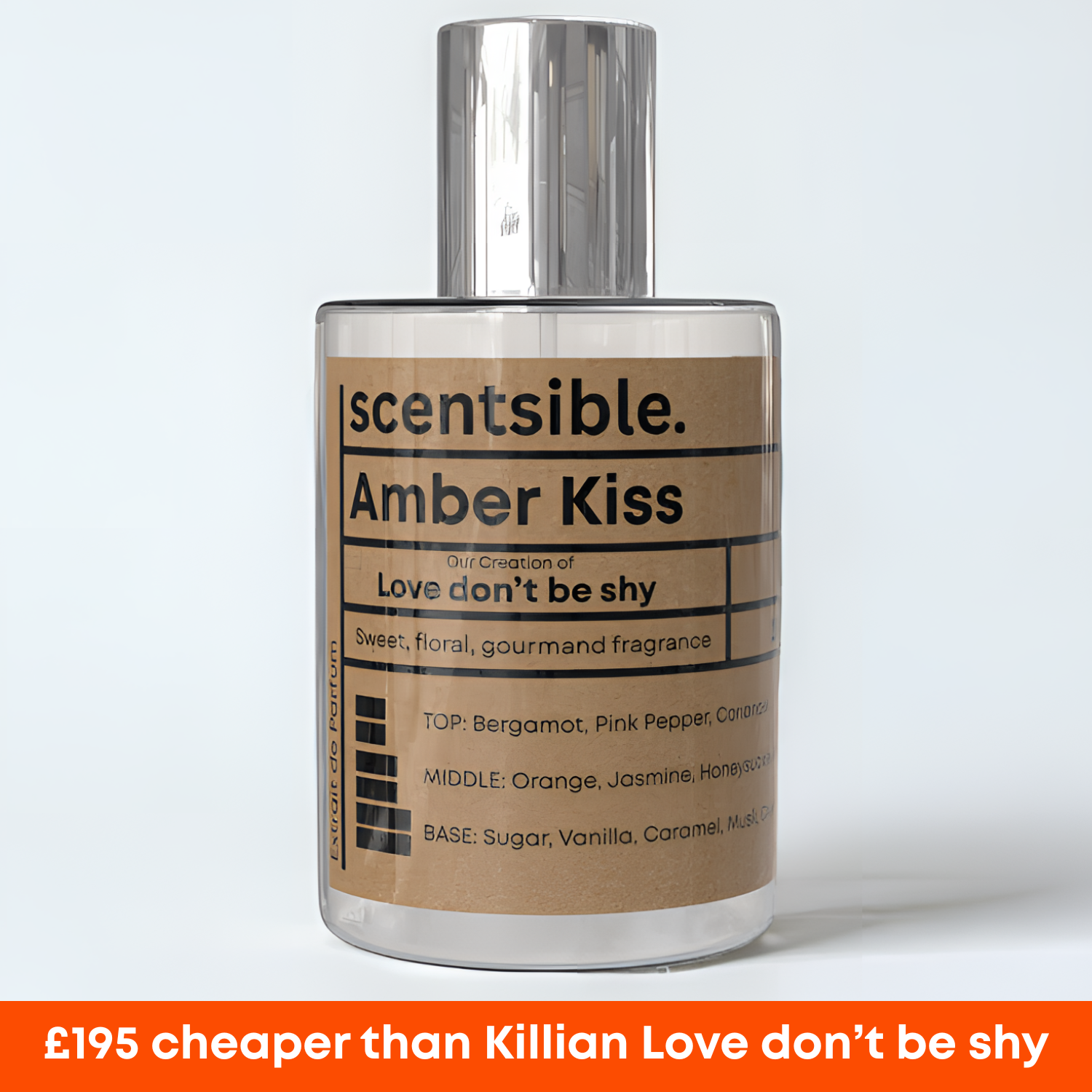 Base Notes: Sugar, Vanilla, Caramel, Musk, Civet, Labdanum